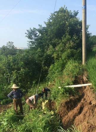 由于7月2日、3日的強降雨引起供水專線35kv線路135#桿處山體滑坡,造成線桿傾斜、拉線松垮等隱患。二水廠迅速啟動防汛搶險預案,組織人員及防汛物質(zhì),采取對滑坡段面進行清障整平處理,袋裝沙土覆蓋,設置排水溝及排水管排水,緊固拉線等措施將險情控制在萌芽狀態(tài),確保安全供水。