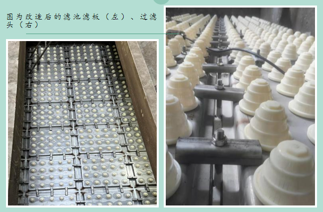 今年,一水廠通過改造濾池,再換“新顏”。經(jīng)過前期市場調(diào)研和試用,集團(tuán)采用新型不銹鋼濾板加濾頭,替代原先的濾磚,不僅提高了過濾效率和過濾后水質(zhì),還提高了廠內(nèi)設(shè)備的運行效率。改造后,水廠水濁度保持在0.3NTU-0.4NTU,較之前降低了30%,水質(zhì)提升效果顯著。