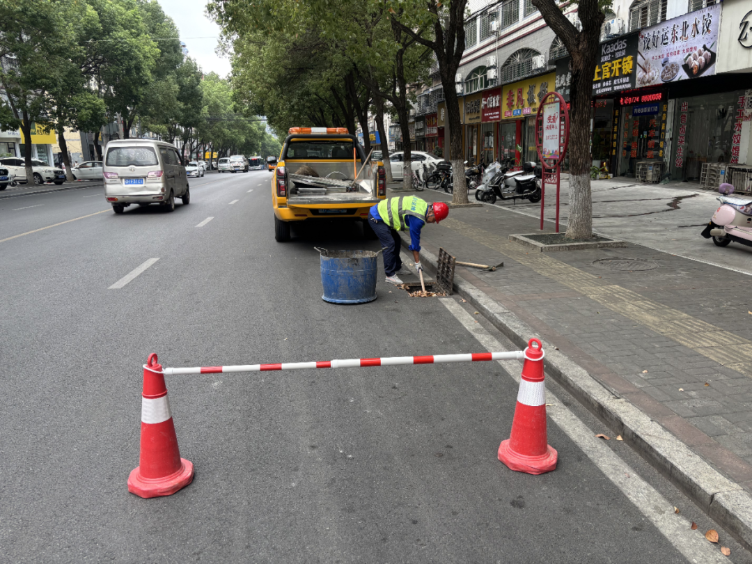 排水公司運維人員正在開啟雨水箅蓋進行清淤