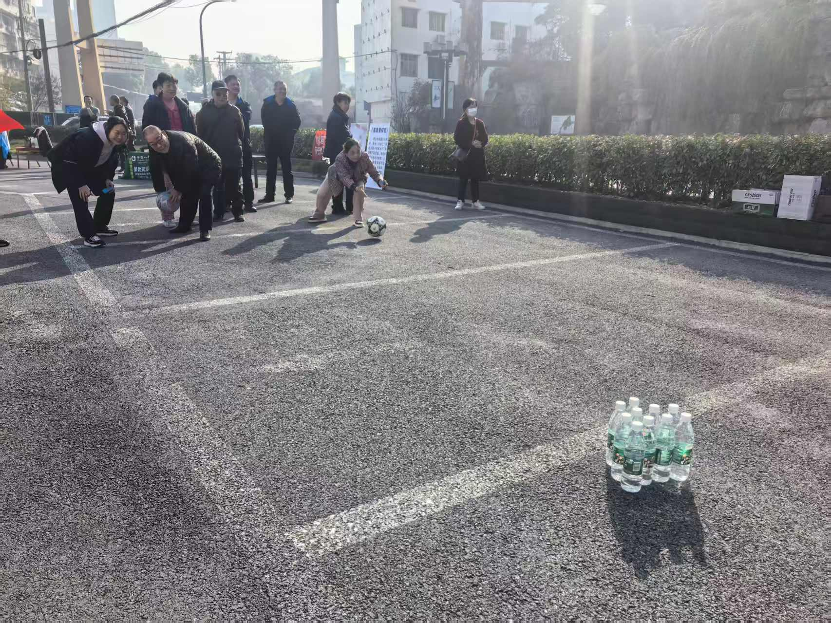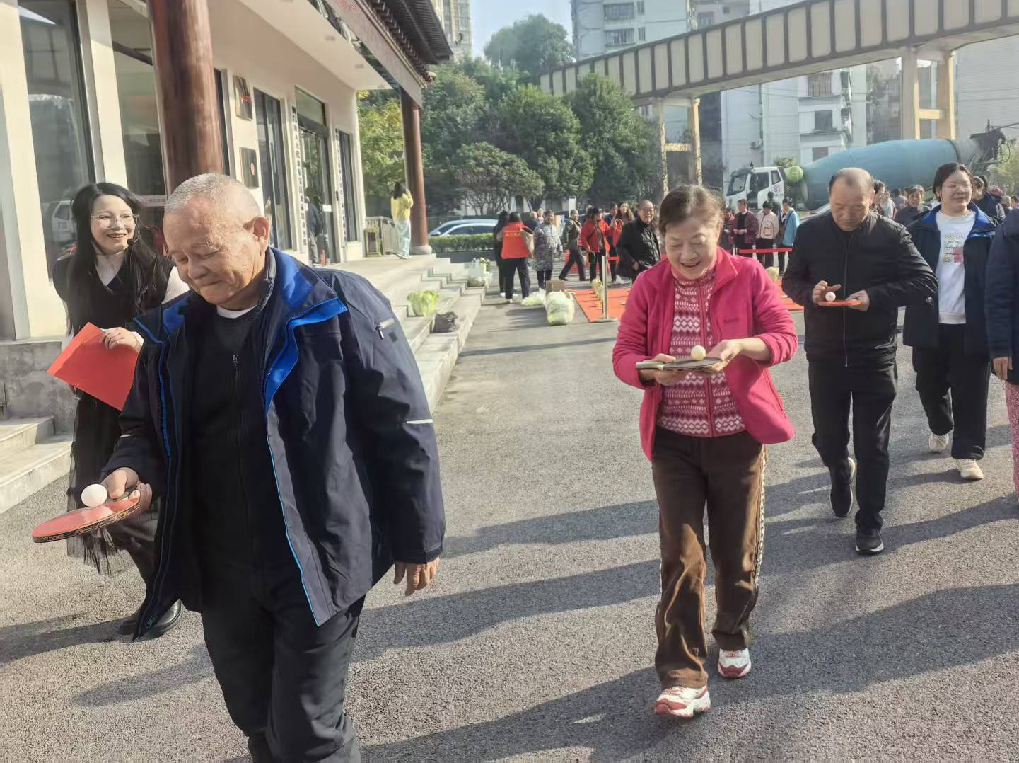 趣味保齡球項(xiàng)目中,老人們瞄準(zhǔn)塑料瓶陣滾球,擊倒瓶子時(shí)的歡呼聲此起彼伏;歡樂套圈前,大家瞄準(zhǔn)蔬菜、油鹽醬醋等生活物資投擲,有人接連套中獎(jiǎng)品,開心得像個(gè)孩子;球拍托球健步走環(huán)節(jié),老人們小心翼翼托球前行,現(xiàn)場滿是歡聲笑語。