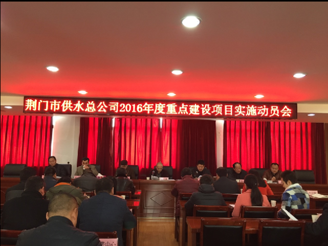 黨委書記、總經(jīng)理陳永根作會議動員,陳總分析了當(dāng)前發(fā)展形勢,指出2016年公司面臨重大發(fā)展機遇和挑戰(zhàn)。隨著中央城市工作會議以及市委七屆八次全體會議的召開,城市建設(shè)迎來歷史性發(fā)展機遇,荊門江漢平原中心城市的定位,十三五期間荊門城市建設(shè)資金達2200億元,三年滾動資金就達800億,2016年公司政府投資項目資金達1億,要搶抓機遇 、迎難而上,攻堅克難、鍛煉隊伍、優(yōu)化結(jié)構(gòu),開辟新的經(jīng)濟增長點;要強化措施,成立四水廠、中心城區(qū)供水設(shè)施、象山大道改造、三條高速出入口改造及中心城區(qū)消防栓建設(shè)、掇刀區(qū)供水管網(wǎng)建設(shè)、東寶區(qū)供水管網(wǎng)建設(shè)、漳河新區(qū)供水管網(wǎng)建設(shè)、響嶺加壓站和二水廠備用電源等七個項目建設(shè)專班,分別由一名副總經(jīng)理擔(dān)任責(zé)任領(lǐng)導(dǎo),對應(yīng)一個責(zé)任處室、單位,明確職責(zé)、層層抓好落實;要抓好項目前期工作,確保項目落地生根,確保按時保質(zhì)完成;相互溝通協(xié)調(diào)協(xié)作、形成合力,確保本職工作、項目建設(shè)兩不誤兩促進;要強化執(zhí)紀問責(zé),由公司紀委負責(zé),加強對重點工作、項目落實情況進行督辦問責(zé)、推動落實,按照任務(wù)分工、時間節(jié)點督辦,強化擔(dān)當(dāng)、強化執(zhí)行力,加快進程,對落實不力的、遲滯延誤的要根據(jù)《中國共產(chǎn)黨紀律處分條例》相關(guān)條款進行處理;要創(chuàng)新開展工作,主動與主管部門對接、協(xié)調(diào),提前謀劃、積極跑事、干事、時不我待、只爭朝夕;要增強項目廉潔自律意識,按規(guī)矩辦事、不踩紅線,確保項目立得起、干部挺得住,能干事、干成事、不出事。會議動員全體干部職工鼓足干勁、通力協(xié)作,迅速掀起項目建設(shè)、會戰(zhàn)熱潮。
